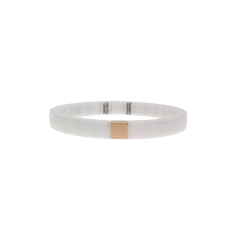 Bracciale scacco piastrina in ceramica bianca lucida con 1 piastrina in oro rosa satinato