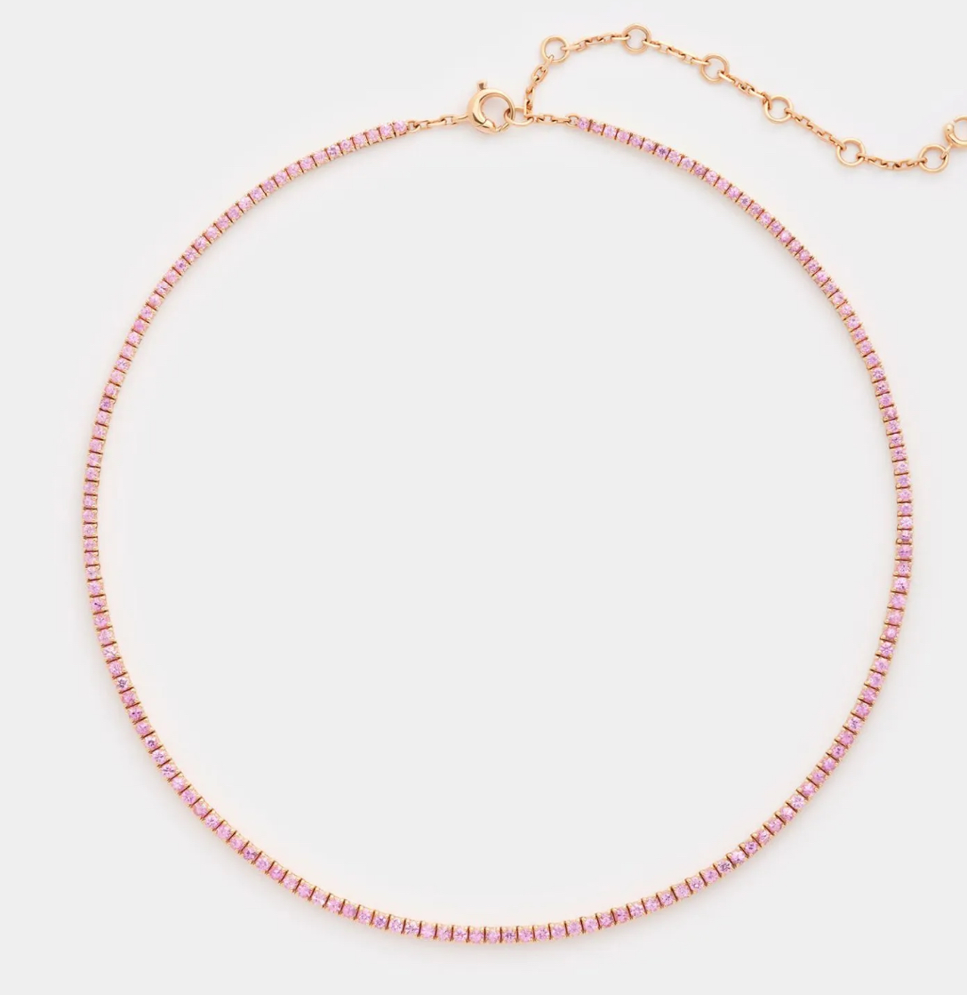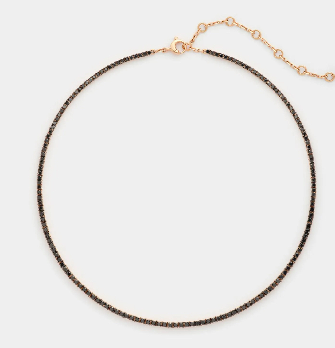 Un classico senza tempo, reinterpretato con grazia contemporanea. Questa collana tennis, realizzata in oro 18 kt, incanta con una linea continua di diamanti naturali incastonati a mano, per una luce pura e sofisticata. Il design è sottile ma di carattere, perfettamente bilanciato grazie alla chiusura regolabile che permette di adattarla con eleganza al décolleté. Disponibile anche in versioni con diamanti black,zaffiri rosa, rubini o zaffiri blu, per chi desidera un tocco di colore e personalità. Un gioiello perfetto da indossare da solo o da abbinare ad altri pezzi preziosi per creare un gioco raffinato di luce e stile.